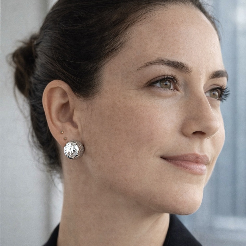 Material: Aretes con poste y tuerca, hechos en plata peruana 950.
