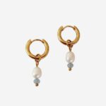 Material: Acero inoxidable chapado en oro amarillo 18k, perla natural freshwater y cuarzo azul natural genuino.