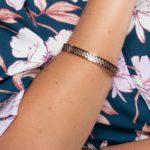 Medidas aprox.: Pulsera con broche a presión de 0.8cm de ancho y 6.3×5.4cm de diámetro interior.