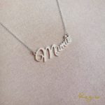 Collar con dije calado Mamá en plata 950 y cadena forzada delgada de plata 925.