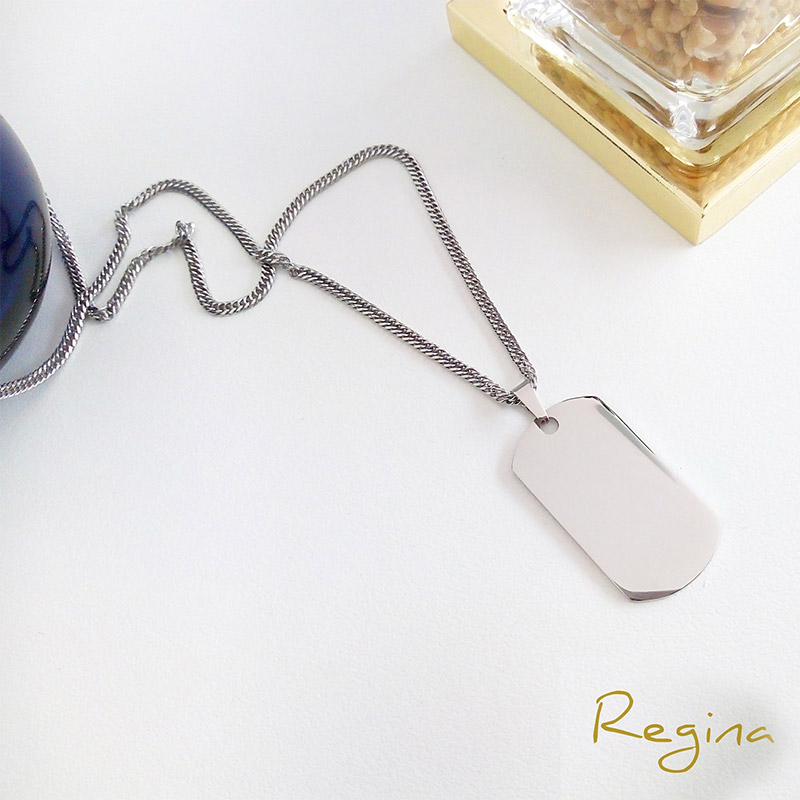 Collar de acero 316L, cadena 3 mm., 55 cm. de largo, placa de 4 x 2 cm.