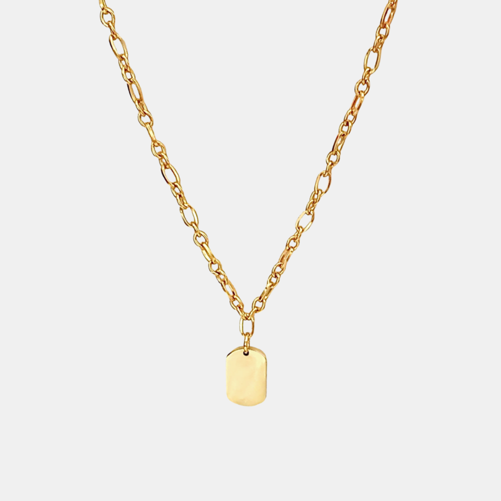 Una plaquita mini que adorarás en combinación con nuestra cadena link 2×1, una belleza.