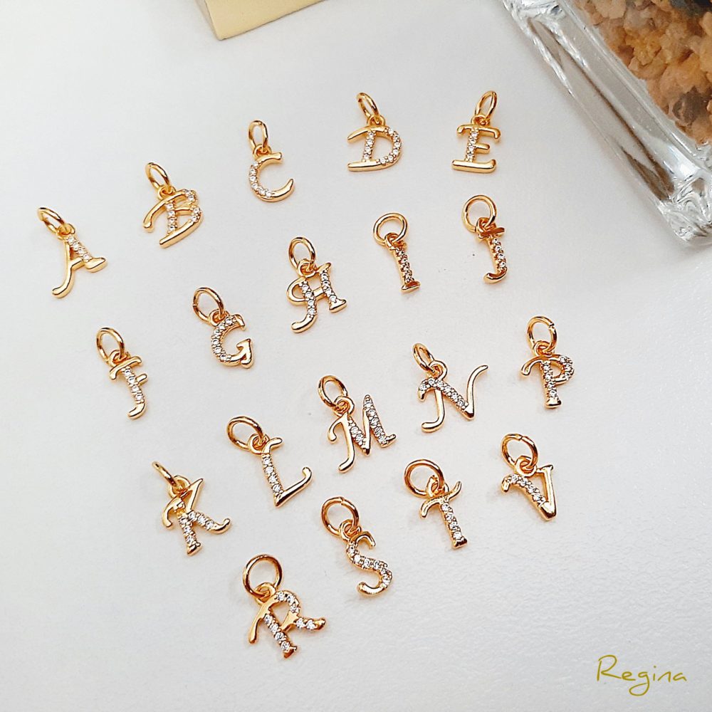 *Material: Pieza de nuestra #líneaReginaTrends hecha de acero 316L chapado en oro 18k, excepto el dije letra que es de cobre chapado en oro con engaste de circonia.