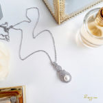 Collar de plata 925 rodinada con engaste pavé en piedra natural circón, perla mallorca y cadena forzada martillada de 46 cm. x 2 mm. + 5 cm. de extender (x3). Dije 3.7 x 1.5 4.6 x 2cm
