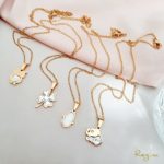 *Collar con cadena de 45cm/1.5mm y dije de acero 316L chapado en oro 18k con detalles en nácar natural.