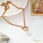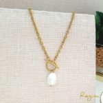 Material: Acero 316L chapado en oro amarillo 18k y perla mallorca.