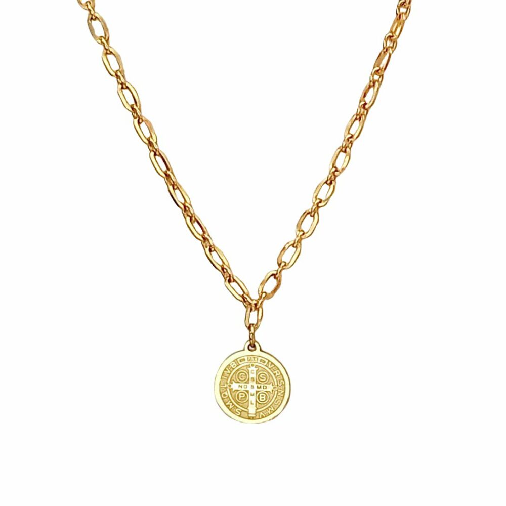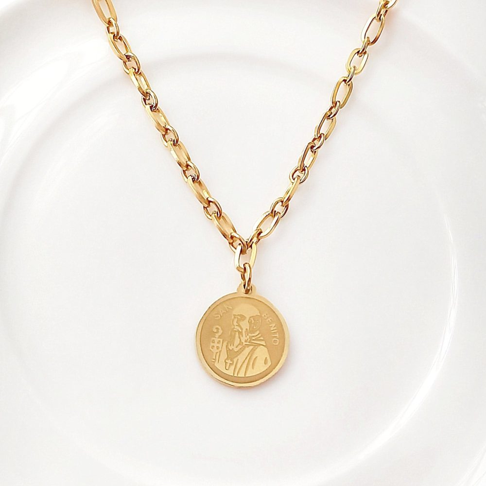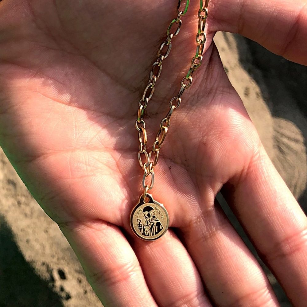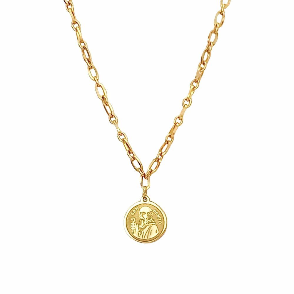 Collar protector con mini medalla de San Benito en un lindo diseño.