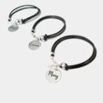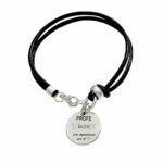 Material: Pulsera de cuero natural y accesorios de plata 950 con placa grabada a láser.