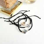Material: Pulseras ajustables tejidas a mano, hechas de hilo, cristal austriaco Swarovski y plata 950.