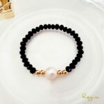 Material: Pulsera artesanal hecha con murano negro facetado, acero chapado en oro 18k y perlas madre.