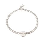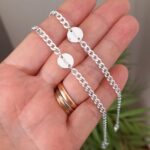 Medidas: Pulsera con cadena cubana de 0.4cm de ancho con mini plaquita de 1cm de diámetro. Incluye 2cm de extender.